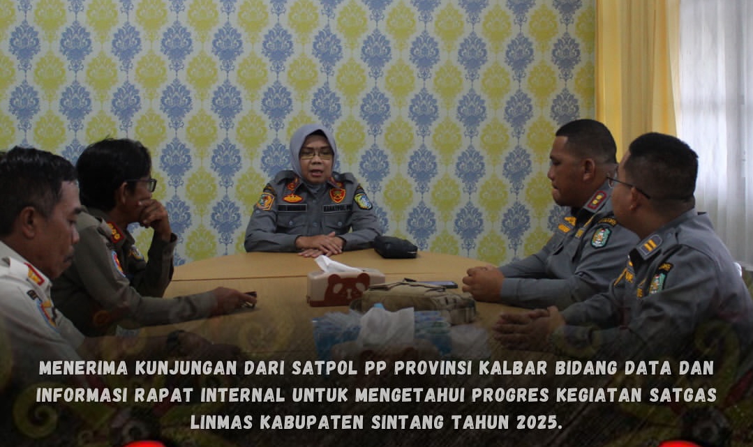 SINTANG, SKR.COM – Kepala Satuan Polisi Pamong Praja (Satpol PP) Kabupaten Sintang, Dra. Siti Musrikah, M.Si., menerima kunjungan kerja dari tim Satpol PP Provinsi Kalimantan Barat, Bidang Data dan Informasi, pada Kamis, 12 Juni 2025. Kunjungan tersebut difokuskan pada rapat internal untuk membahas dan mengevaluasi progres kegiatan Satuan Tugas Perlindungan Masyarakat (Satgas Linmas) Kabupaten Sintang tahun 2025.