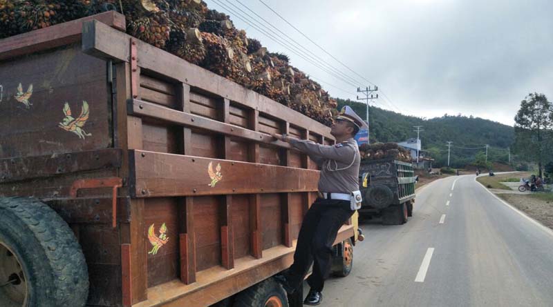 Seperti truk bermuatan sawit yang tidak dilengkapi jaring pengaman. Pada penertiban truk bermuatan tanpa jaring pengaman yang dilaksanakan Sat Lantas di Desa Batu Buil Kecamatan Belimbing, terpadat 12 truk yang terpaksa ditilang.