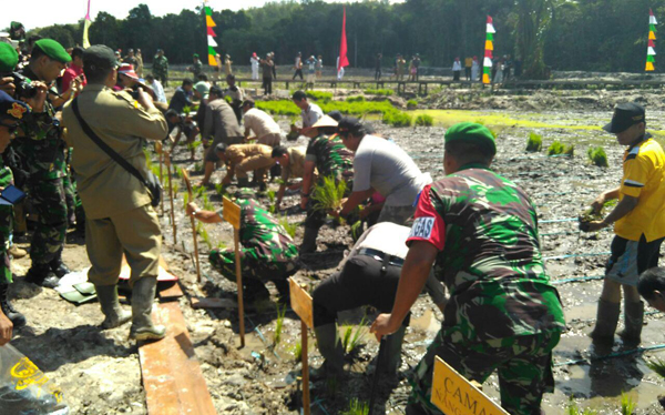 KETAPANG, SKR.COM – Pangdam XII/Tpr Lakukan Tanam Perdana Perluasan Sawah Dalam Rangka Program Swasembada Pangan, Kerjasama Kementan dan TNI AD, di Desa Tebuar, Kecamatan Nanga Tayap, Kabupaten Ketapang, Kalbar Selasa (3/5/2016).