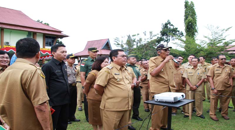 SINTANG, SKR.COM – Bersamaan dengan pelaksanaan apel bulanan, silaturahmi Natal 2018 dan Tahun 2019 pada Senin, 14 Januari 2019 di Halaman Kantor Bupati Sintang. Bupati Sintang dr. Jarot Winarno melakukan launching lelang perdana untuk dua paket pekerjaan di Pemerintah Kabupaten Sintang.