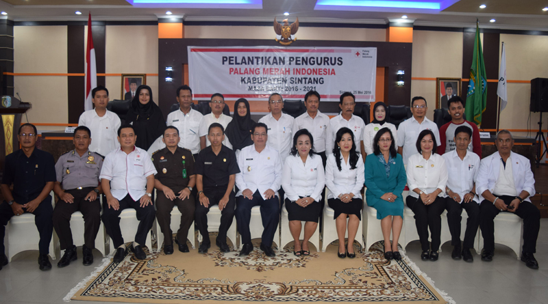 SINTANG, SKR.COM – Ketua Palang Merah Indonesia Propinsi Kalimantan Barat Ny.Frederika Cornelis melantik pengurus PMI Kabupaten Sintang Masa Bhakti 2016-2021 di Ruang Balai Praja Kantor Bupati Sintang pada Rabu, 25 Mei 2016.