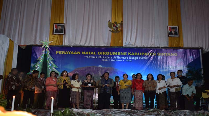 SINTANG, SKR.COM – Ribuan umat Kristiani yang ada di Kota Sintang dari berbagai denominasi gereja dan umat Katolik berkumpul di Gedung Pancasila pada Jumat, (11/1/2019) untuk mengikuti perayaan Natal Oikumene Tingkat Kabupaten Sintang.