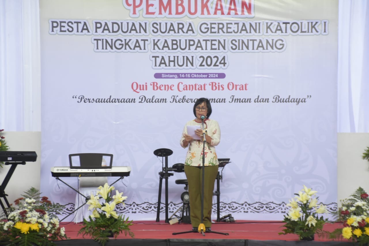 Hal tersebut disampaikan oleh Hendrika Ketua Panitia Pesparani Katolik I Tingkat Kabupaten Sintang dalam laporannya pada saat pembukaan Pesparani Katolik I Tingkat Kabupaten Sintang oleh Bupati Sintang dr. H. Jarot Winarno pada Senin, 14 Oktober 2024 di Indoor Apang Semangai Sintang.