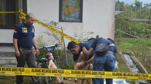 MELAWI, SKR.COM – Polres Melawi menggelar proses rekontruksi pembunuhan dan mutilasi yang dilakukan Brigadir Petrus Bakus kepada dua anak kandungnya, di Gang Darul Falah Desa Paal Kecamatan Nanga Pinoh, Rabu (16/3). Rekontruksi yang dimulai pada pukul 11. 09 WIB tersebut, dipimpin oleh Kasat Reskrim Melawi, AKP Siswadi.