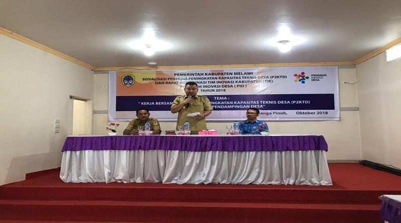 MELAWI, SKR.COM – program Inovasi desa merupakan salah satu upaya kemendesa PDTT dalam mempercepat penanggulangan kemiskinan di desa melalui pemanfaatan dana desa secara lebih berkualitas. Hal tersebut diungkapkan Wakil Bupati Melawi, Dadi Sunarya Usfa Yursa dalam membuka kegiatan sosialisasi penyediaan peningkatan kapasitas teknis desa (P2KTD) dan rapat koordinasi tim inovasi desa kabupaten program inovasi desa (PID) tahun 2018 di Melawi di salah satu hotel di Nanga Pinoh, Selasa (16/10).