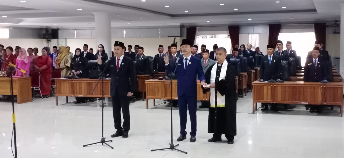 SINTANG, SKR.COM – Dewan Perwakilan Rakyat Daerah (DPRD) Kabupaten Sintang menggelar rapat paripurna pengucapan sumpah/janji pimpinan definitif, Jumat (25/10/2019).