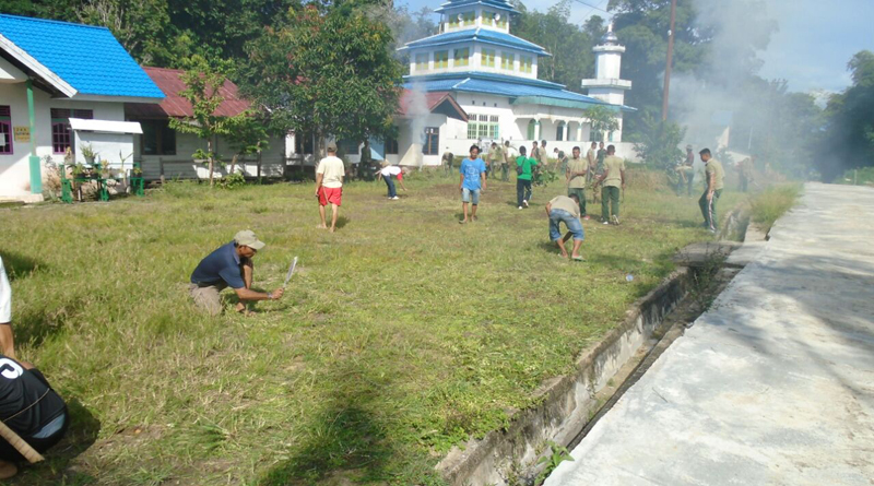 Kerjabakti yang dilakukan TNI bersama warga diantaranya membersihkaan Masjid Jami’, membersihkan rumput di halaman gedung serba guna, dan juga melakukan pembersihan pemakaman sekaligus jiarah di makam pahlawan.