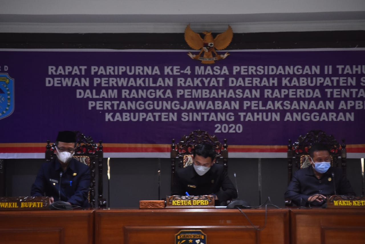 Pada Rapat Paripurna yang dipimpin oleh Ketua DPRD Kabupaten Sintang Florensius Ronny didampingi Wakil Ketua DPRD Kabupaten Sintang Heri Jambri tersebut, Wakil Bupati Sintang membacakan Pidato Pengantar Laporan Pertanggungjawaban pelaksanaan APBD Tahun anggaran 2020 Pemerintah Kabupaten Sintang kepada Dewan Perwakilan Rakyat Daerah Kabupaten Sintang.
