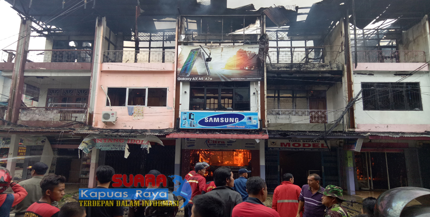 SINTANG, SKR.COM – Enam unit ruko di jalan Di Panjaitan, Kelurahan Kapuas Kanan Hulu, Kecamatan Sintang, Kabupaten Sintang, Kalimantan Barat di obok-obok si jago merah, Selasa (31/1/2017).