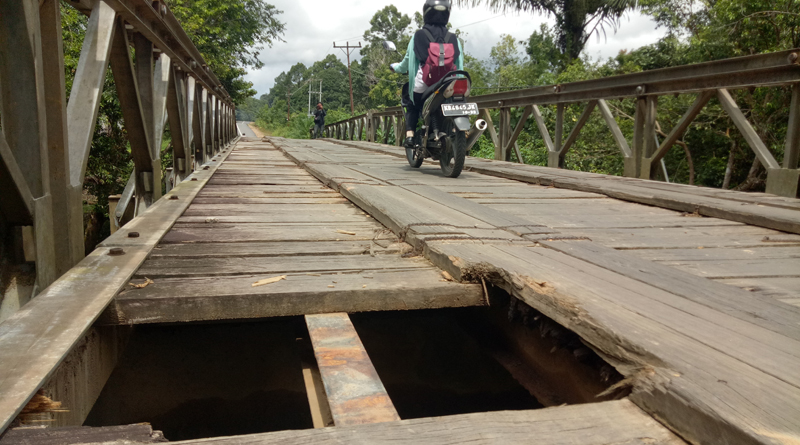 “Jalan sudah bagus karena belum lama ini ditingkatkan. Namun jembatannya tidak juga tersentuh. Padahal, selain jalan yang bagus, juga memerlukan jembatan yang kuat dan kokoh untuk membuat kenyamanan arus lalulintas pengendara,” ucapnya.