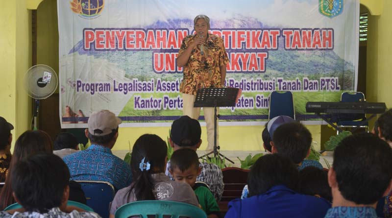 Dalam sambutannya Bupati Sintang mengatakan menyerahkan secara simbolis sertifikat tanah melalui program PTSL, yang dulu disebut program prona yang dulunya ditargetkan 1.000 hingga 2.000 bidang tanah dan saat ini program PTSL pada Tahun lalu sebanyak 15 ribu tercapai dan pada Tahun 2019 ini total target seluruhnya ada sekitar 18 ribu lebih sudah tercapai.