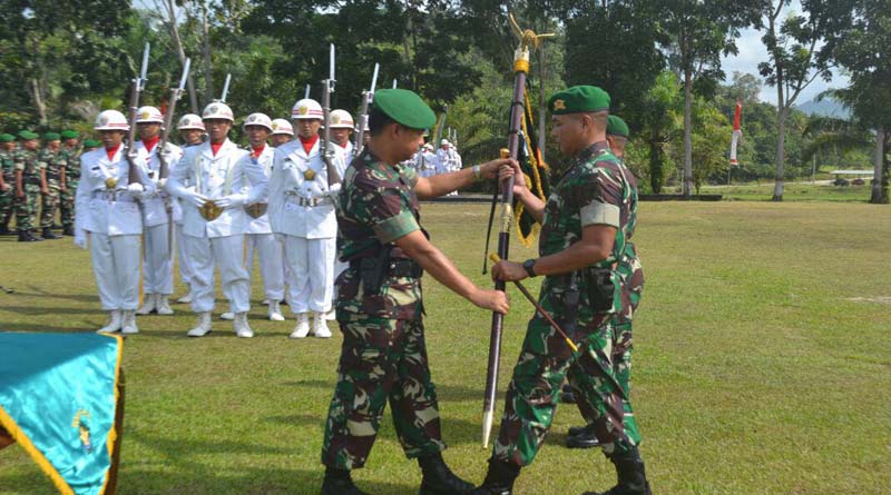 ANJUNGAN, SKR.COM – Komandan Korem (Danrem) 121/Abw Brigjen TNI Bambang Ismawan, S.E., M.M. meminpin pelaksanaan Upacara Serah Terima Jabatan Komandan Batalyon 643/Wns dari Letkol Inf. Ari Dwi Nugroho kepada Mayor Inf. Dwi Agung Prihanto di lapangan upacara Yonif 643/ Wns jalan Terusan Anjungan , Moton Tinggi Anjungan, Jumat (19/1/208).