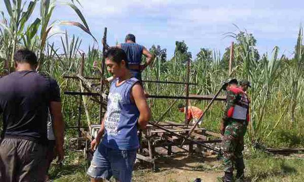 SINGKAWANG, SKR.COM – Anggota Koramil 16 Sedau bersama warga membangun Pos Keamanan Lingkungan (Pos Kamling) di RT 10 Kelurahan Sungai Bulan Kecamatan Singkawang Utara, untuk meningkatkan keamanan dan ketertiban lingkungan warga, belum lama ini.