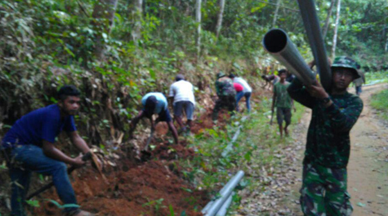 KETAPANG, SKR.COM – Komandan Koramil (Danramil) 1203-01/Nanga Tayap Kapten Inf Samsu Alam, selaku DAN SSK pimpin langsung di lapangan dalam pembuatan Sarana Air Bersih.