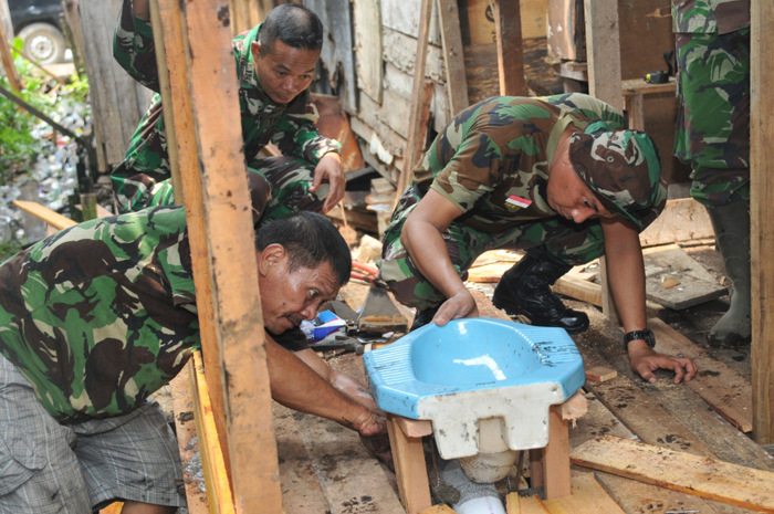 Namun kali ini prajurit Pendam bukan duduk di depan komputer melainkan angkat alat perkakas yang digunakan untuk pembuatan Kakus dalam rangka mendukung program Jambanisasi Angkatan Darat, yang dilakukan pada Rabu, 28 Oktober 2015.