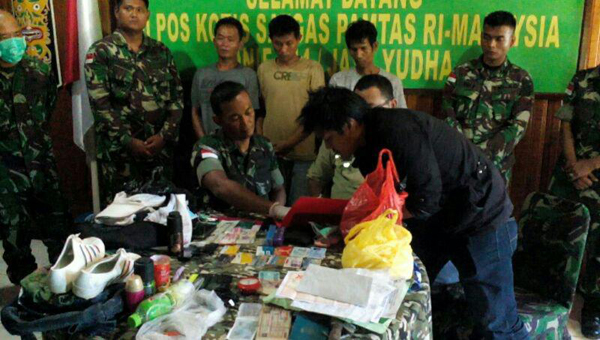 Tersangka berinisial EE (26) warga Dusun Merau Desa Entikong Kecamatan Entikong Kabupaten Sanggau dan Fe (44) warga Dusun Perifin Desa Entikong Kecamatan Entikong Kabupaten Sanggau dengan barang bukti berupa satu unit sepeda motor jenis Honda Revo dengan tidak menggunakan Nopol, Narkoba jenis sabu-sabu sebanyak 2 Kg terdiri dari dua kantong plastik yang disimpan dalam bungkusan Susu merk Dutch Lady Premium, satu buah alat timbang, satu buah Paspor a.n EE No. Paspor B 3082391, dua buah Senjata Tajam (Golok dan Pisau Kecil), satu set peralatan pancing, satu buah dompet berisi KTP a.n EE, ATM bank Mandiri, 2 (dua) buah STNK Honda Revo dan Supra X dan uang sebesar Rp. 3.000,- (tiga ribu rupiah), Dua buah Hand Phone merk Nokia, satu buah Parfum merk Axe, satu buah Deodoran, satu buah korek api, satu buah Sepatu, satu buah baju, satu buah celana pendek dan satu buah celana dalam, terangnya.