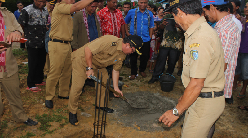 SINTANG, SKR.COM – Wakil Bupati Sintang Drs. Askiman, MM melakukan penancapan tiang pertama pembangunan Gereja Persekutuan Sidang Kristus (GPSK) Filadelfia Desa Empura Kecamatan Ketungau Hulu Kabupaten Sintang, Kalbar pada Senin (4/9/17).