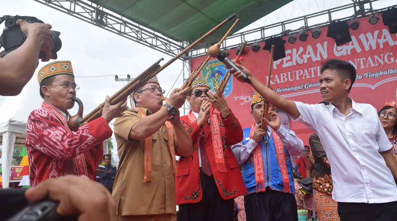 pada kesempatan ini, wakil bupati membuka acara pekan gawai dayak Sintang ini dengan meniup alat musik Keledik. alat musik tiup dari bambu dan labu. setelah sebelumnya memotong ompong dengan adat Ud Danum dan dilanjutkan dengan prosesi ritual adat dari kecamatan Binjai Hulu.