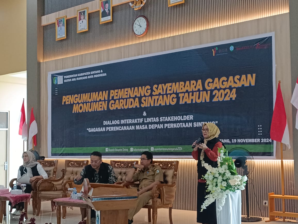 Sementara Mira Sophia Lubis Dosen Fakultas Teknik Universitas Tanjungpura Pontianak yang juga Anggota Dewan Juri Akademisi pada Sayembara Desain Monumen Garuda Kabupaten Sintang Tahun 2024 menyampaikan materi tentang Ruang Terbuka Publik, Napas Kota Berkelanjutan Strategi Menuju Masa Depan yang Hijau.
