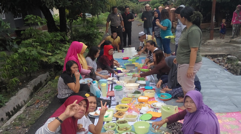 Setiap rumah masing-masing membawa nasi lengkap dengan sayur dan lauk untuk berkumpul bersama di hamparan terpal di Jalan Gang. Sebelum makan bersama, tidak lupa dilakukan do’a bersama, sebagai wujud syukur kepada sang pencipta yakni Allah S.W.T.